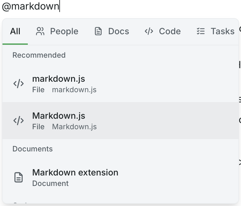 - @ code files — Tag specific files or repositories from GitHub.